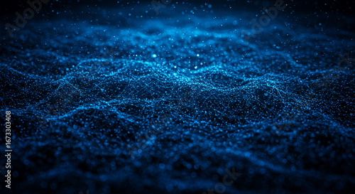 Obraz premium Dynamic abstract blue network of glowing particles creating a futuristic...