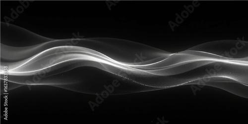 © PS GALLERY , Naklejka premium Dynamic abstract blue smoke lines and waves flow against a dark background, creating a vibrant, energetic design