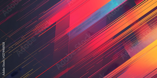 Fototapeta premium Dynamic abstract composition with diagonal neon streaks in red, orange, and...