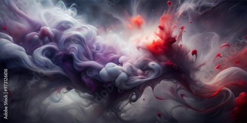 Fototapeta premium Dynamic abstract composition with swirling colors and bursts of red and purple