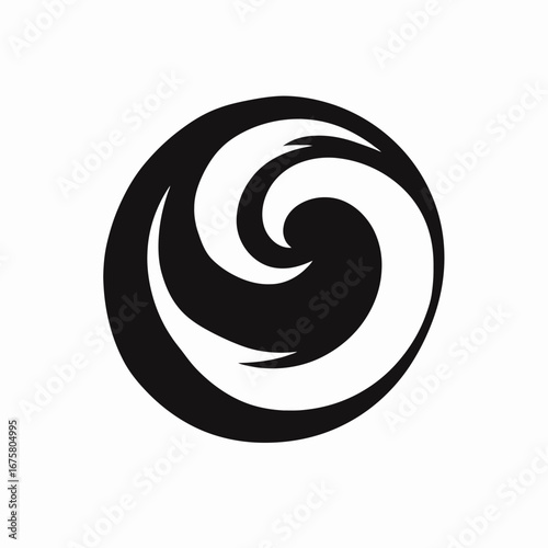 Fototapeta premium Dynamic abstract flowing wave with spiral vector black and white silhouette