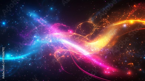 Fototapeta premium Dynamic abstract glowing digital patterns with neon light swirling in a matrix.