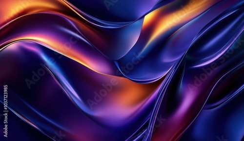 Obraz premium Dynamic Abstract Gradient with Flowing Purple, Blue, and Amber Curves, Glossy Liquid Metal Texture, and Artistic Wave Patterns in High Resolution