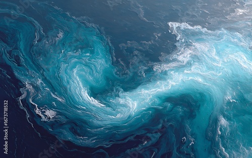 Fototapeta premium Dynamic abstract high-resolution image of a blue ocean wave capturing fluid...