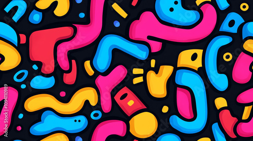Obraz premium Dynamic abstract seamless pattern with bright curved shapes