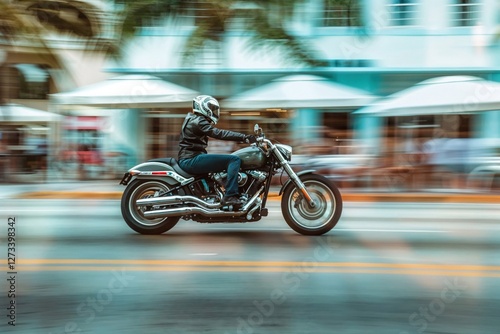 Fototapeta premium dynamic action shot of a motorcyclist speeding through the streets, captured...