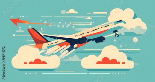 © Mahmud, Naklejka premium Dynamic Airplane in Flight Over Vibrant Abstract Sky design
