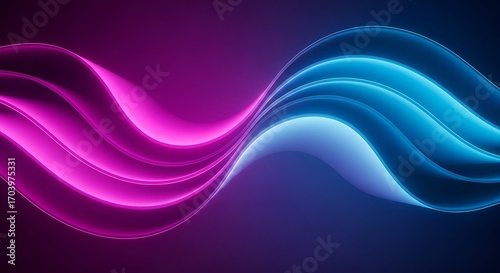 Naklejka premium ネオンピンクと青の鮮やかで輝く波が、モダンな雰囲気を作り出す, dynamic and flowing abstract background