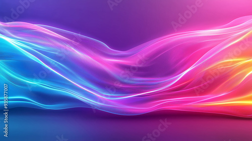 © Akuma, Naklejka premium Dynamic and Vibrant Neon Waves Flowing on a Gradient Background with Striking Colors