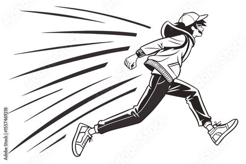 © fariya, Naklejka premium Dynamic Anime Character Jumping in Vector Style with Black Lines and Vibrant Colors