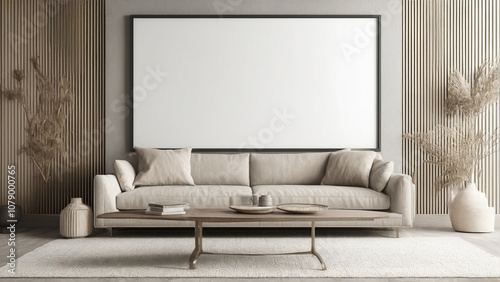 Fototapeta premium Dynamic Bedroom Interior with Blank Frame Mockup: Contemporary Decor and...
