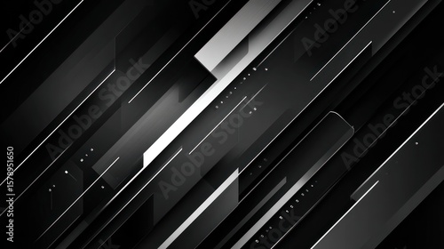 © kucret, Obraz premium Dynamic black and silver rectangular shapes cascade diagonally across a dark background