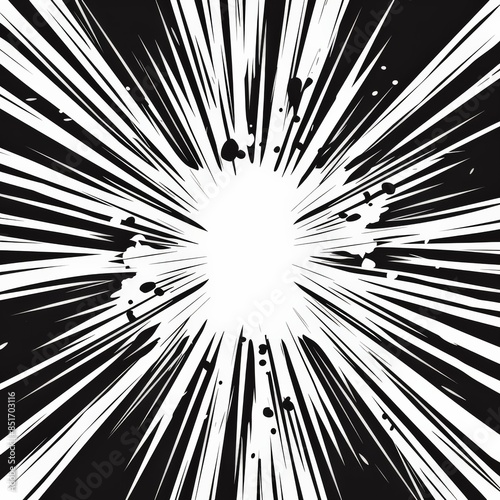 © Parintron, Obraz premium Dynamic black and white comic book style explosion background with radial lines and ink splatters, perfect for dramatic impact scenes.