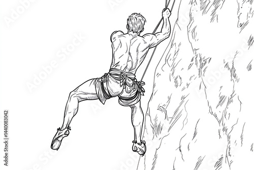 Obraz premium Dynamic Black and White Illustration of a Rock Climber Ascending a Cliff Face