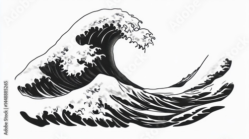 © Christhoper, Fototapeta premium Dynamic Black and White Ocean Wave Illustration Graphic Design Element for Nature Themes Arti