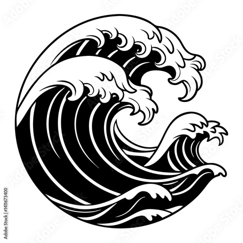 Fototapeta premium Dynamic Black and White Waves Illustration for Tattoo Design and Graphic Art
