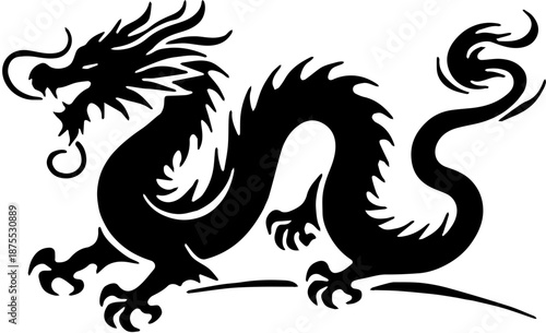 Obraz premium Dynamic Black Dragon Silhouette Mythical Creature