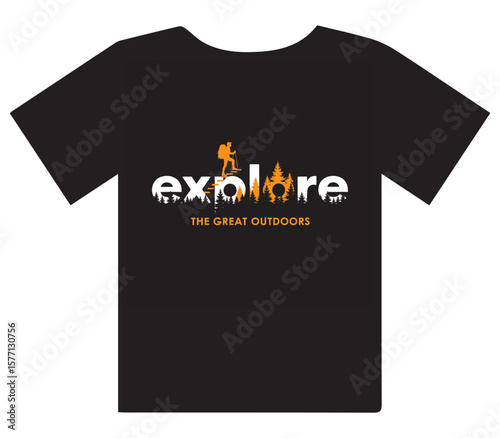 Fototapeta premium Dynamic black t-shirt design celebrating adventure and the great outdoors with vibrant graphic