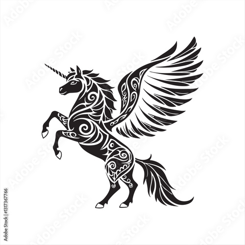 Fototapeta premium "Dynamic Black & White Pegasus Illustration"