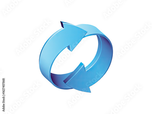 Obraz premium Dynamic blue arrows form a circular loop symbolizing renewal, refresh, and...