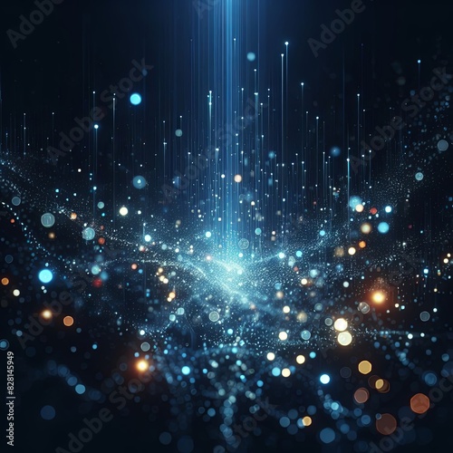 © Yi, Obraz premium Dynamic Blue Bokeh Lights: Abstract Digital Art Design for Tech Video Presentations.
