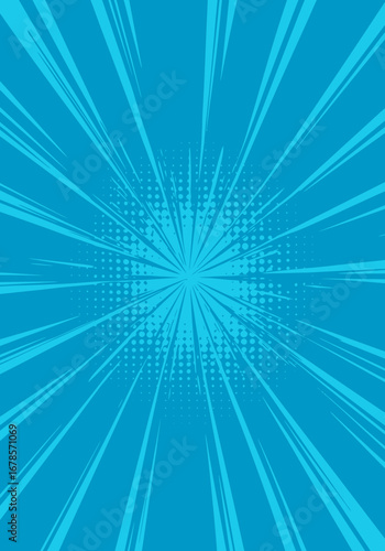 © Tania Dewi, Obraz premium Dynamic Blue Comic Book Style Burst with Halftone Dots.