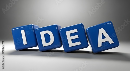 Obraz premium Dynamic Blue Cubes Spelling IDEA 3D Render of Innovative Concept.
