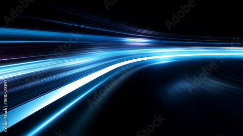Fototapeta premium Dynamic blue light speed streak background visualizing high velocity, fiber...