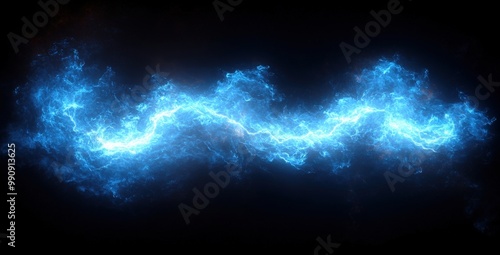 © Iurii, Fototapeta premium Dynamic blue lightning effect isolated on black background creating a vivid visual energy