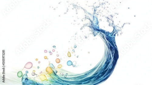 Fototapeta premium Dynamic Blue Water Wave Splash with Colorful Bubbles