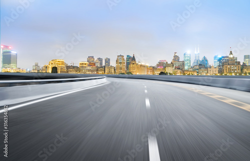 Obraz premium Dynamic blurry highway and city skyline in Shanghai, China
