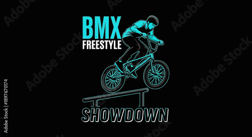 Obraz premium Dynamic Bmx Freestyle Rider Performing Tricks On A Rail