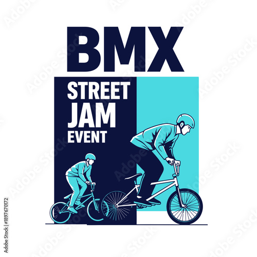 Obraz premium Dynamic BMX Street Jam Event Illustration Featuring Cyclists And Bold Typography