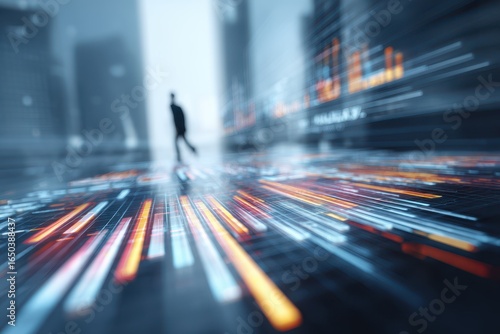 © Pavel, Fototapeta premium Dynamic business marketing concepts showcased through blurred lines and urban silhouettes to represent growth and innovation in a modern cityscape