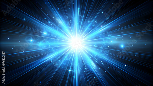 © suwatthana, Obraz premium Dynamic celestial explosion with glowing blue sunburst on black background