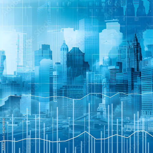 Obraz premium dynamic chart and city skyline in blue tones representing growth and success....