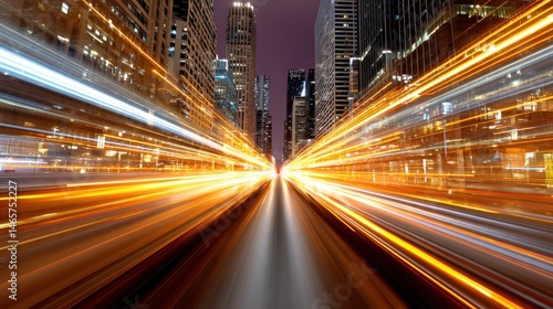 © Kittichet, Fototapeta premium Dynamic City Streets with Blurred Lights at Night in Urban Environment