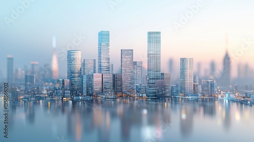 Fototapeta premium Dynamic cityscape featuring skyscrapers in background illustrating urban...