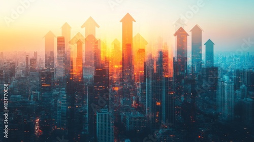Fototapeta premium Dynamic Cityscape with Growth Arrows