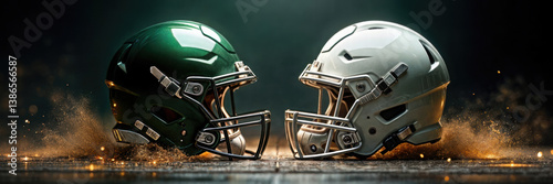 Fototapeta premium Dynamic close-up of two football helmets, symbolizing competition and...