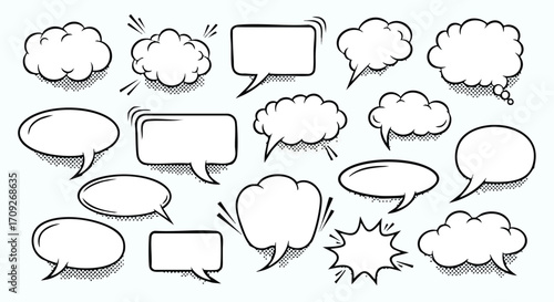 Fototapeta premium Dynamic collection of diverse comic speech bubbles for creative design projects and engaging visual narratives