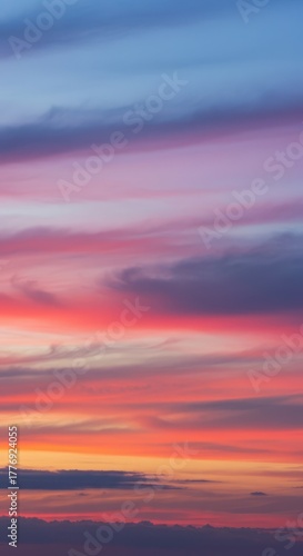 Fototapeta premium Dynamic colorful gradient in the evening sky featuring gentle atmospheric...