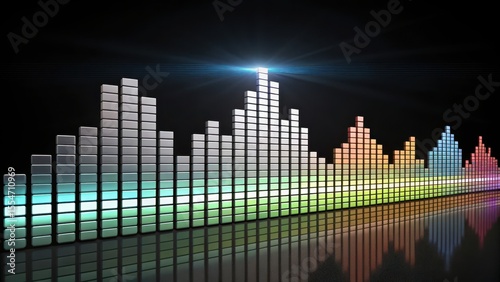 Obraz premium Dynamic colorful sound equalizer bars with reflection on dark background for audio visualization