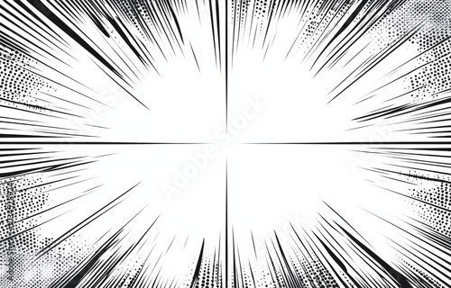 © kkkiim graphic, Obraz premium Dynamic Comic Book Background with Four Panels and Halftone Pattern, Featuring Sun Rays and Sharp Lines.