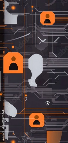 Naklejka premium Dynamic cybernetic backdrop featuring orange and silver elements for modern...