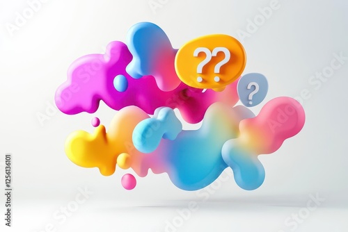 Fototapeta premium dynamic 3d speech bubbles, floating question marks, vibrant gradient colors,...