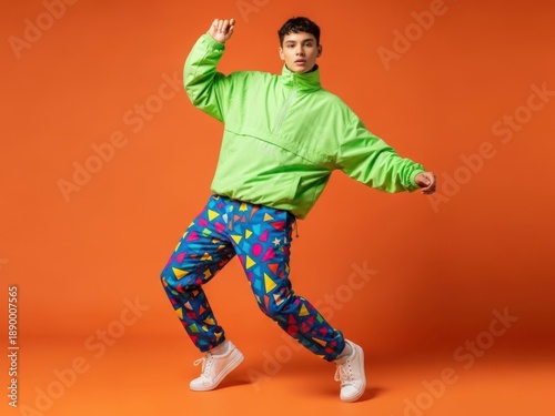 © MdKamrul, Fototapeta premium Dynamic Dance Pose Man Colorful Studio