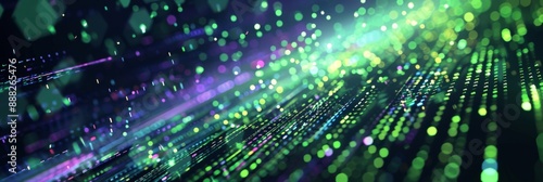 © yanlong, Fototapeta premium Dynamic Data Processing Illustrated: Abstract Julia Programming Language Concept with Green and Violet Data Bits