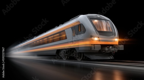 Fototapeta premium Dynamic Data Train with Glowing Visualization Futuristic Concept High-Speed Transport Dark Environment Close-Up View