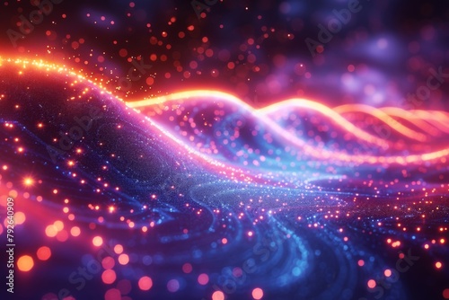 © Da, Obraz premium "Dynamic Data Transfer: Vibrant Neon Lights and Striking Light Patterns"